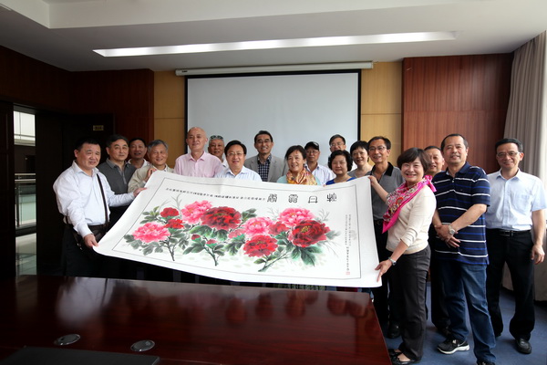 Z8512班黨支部書記趙美祥簡要介紹了兩部作品的情況,表達了校友們對母校的情誼。此次捐贈的字畫包括書法《沁園春·雪》和水彩畫《牡丹天香圖》。《沁園春·雪》為李可染書院專職書畫家、校友張航所作,《牡丹天香圖》為何麗華校友所作,共同表達了Z8512班對母校的由衷敬意和良好祝愿。