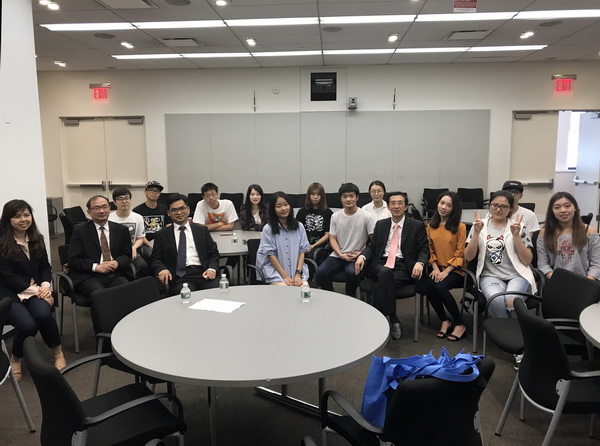 楊震校長與我校與紐約理工學院合作項目在美學生會談