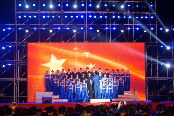 晚會在氣勢恢弘的全場合唱《歌唱祖國》的歌聲中落下帷幕。