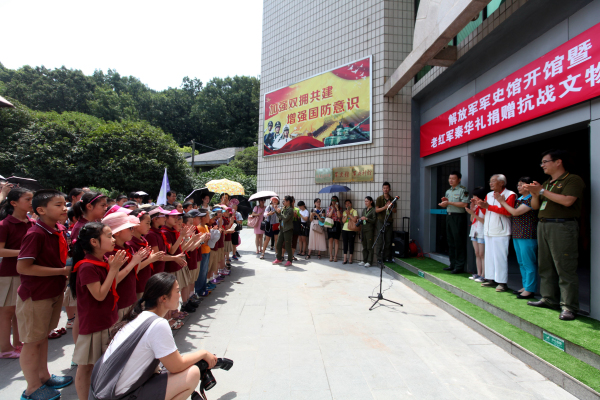 今年是紀念全民族抗戰(zhàn)爆發(fā)80周年。為支持開展國防教育,弘揚愛國熱情,718日上午,在南京國防園“中國人民解放軍軍史館”開館儀式上,105歲老紅軍、南京郵電學(xué)院首任黨委書記兼院長秦華禮向南京國防園慷慨捐贈珍藏了七十多年的抗戰(zhàn)文物兩件,并為軍史館開館揭幕。