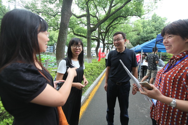 校黨委副書記、紀委書記朱永平與新生及家長交談