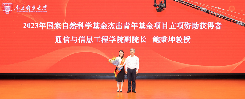 會上,校黨委副書記蔣國平宣讀《南京郵電大學2022-2023學年表彰決定》,校黨委書記郭宇鋒分別為2022年國家級教學成果獎二等獎獲獎人員代表蔣國平教授,2022年國家自然科學基金重大項目負責人團隊代表竇春霞教授,2023年國家自然科學基金杰出青年基金項目立項資助獲得者鮑秉坤教授,2023年國家自然科學基金優秀青年基金項目立項資助獲得者代表陶冶老師、馬云老師、王婷老師頒發綬帶。