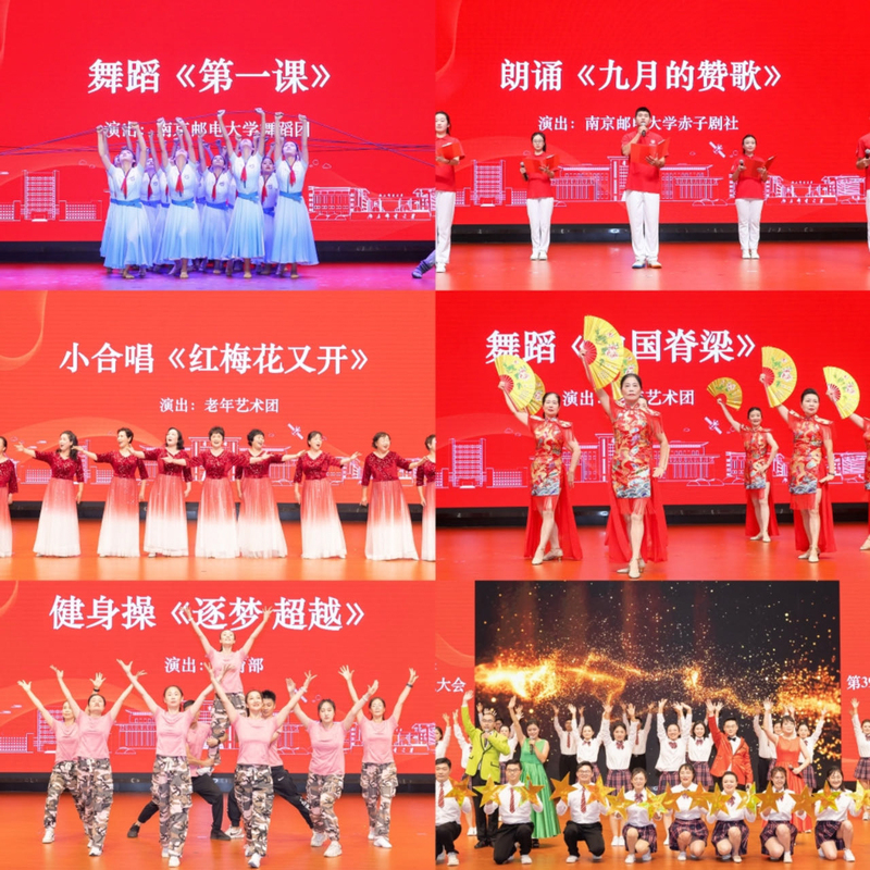 會上,校老年藝術團、舞蹈團、赤子劇社、體育部、材料科學與工程學院師生為老師們獻上了具有南郵紅色底蘊的歌舞、朗誦、合唱、健身操等表演。