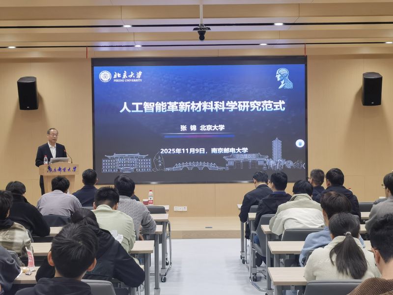 11月9日下午,中國(guó)科學(xué)院院士、北京大學(xué)常務(wù)副校長(zhǎng)、博雅講席教授張錦應(yīng)邀到南京郵電大學(xué)“FlexMat柔性電子材料前沿論壇”開(kāi)展學(xué)術(shù)交流,作題為“人工智能革新材料科學(xué)研究范式”學(xué)術(shù)報(bào)告。材料科學(xué)與工程學(xué)院、化學(xué)與生命科學(xué)學(xué)院教師、研究生、本科生等200余人聆聽(tīng)報(bào)告。