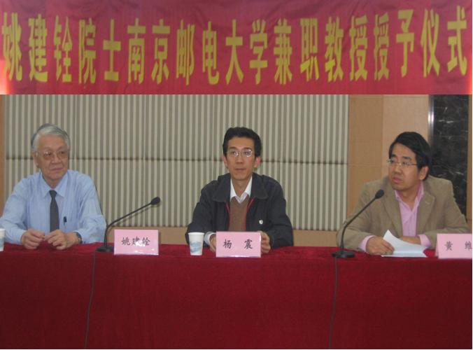 2006年10月30日下午,中國科學院院士、天津大學教授、博士生導師姚建銓受聘南京郵電大學兼職教授儀式暨學術報告會在學校科學會堂演講廳舉行。副校長黃維主持儀式,校長楊震向姚建銓院士頒發了兼職教授聘書,并為姚建銓教授戴上南京郵電大學的校徽。