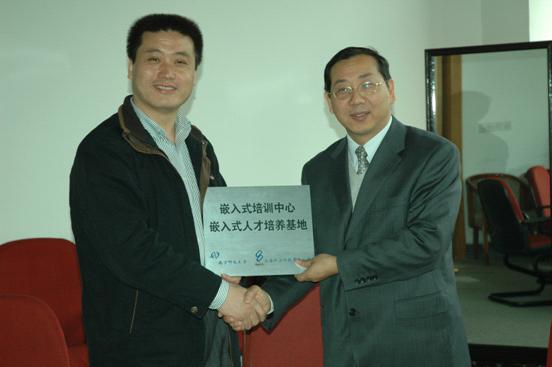 為了進(jìn)一步提高學(xué)生的實(shí)踐能力,深化校企合作,計(jì)算機(jī)學(xué)院和上海雙實(shí)科技有限公司于2007年4月18日上午在校本部舉行“嵌入式培訓(xùn)中心暨嵌入式人才培訓(xùn)基地”簽約掛牌儀式。出席掛牌儀式的有計(jì)算機(jī)學(xué)院院長楊庚教授、上海雙實(shí)科技有限公司董事長陳剛教授、高教研究所所長梅杓春教授、教務(wù)處副處長李飛教授、計(jì)算機(jī)學(xué)院副院長孫知信教授、章韻副教授以及相關(guān)的專家教授。章韻副院長主持了掛牌儀式。