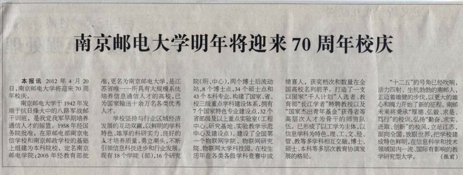 【人民郵電報】南京郵電大學明年將迎來70周年校慶