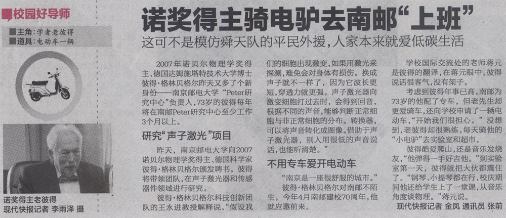 【現(xiàn)代快報(bào)】諾獎(jiǎng)得主騎電驢去南郵“上班”