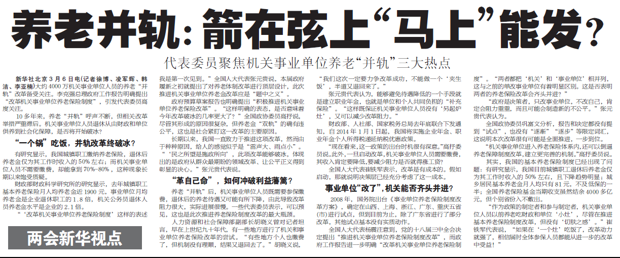 【新華每日電訊】養老并軌:箭在弦上“馬上”能發?