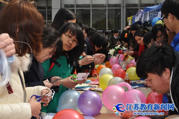 3月7日是女生節(jié),南京郵電大學(xué)的女生們?cè)趯W(xué)校的南二廣場用自己的巧手做成串珠、鑰匙扣等一件件小飾品送給過往的同學(xué)和老師。在這么一個(gè)富有女人味的現(xiàn)場,記者驚奇地發(fā)現(xiàn)不少男生的身影。男女搭配,精心編織,美麗的飾品躍然入目。男生的做派,看著似乎不那么“大男人”,卻讓女生別有一份溫情上心頭。