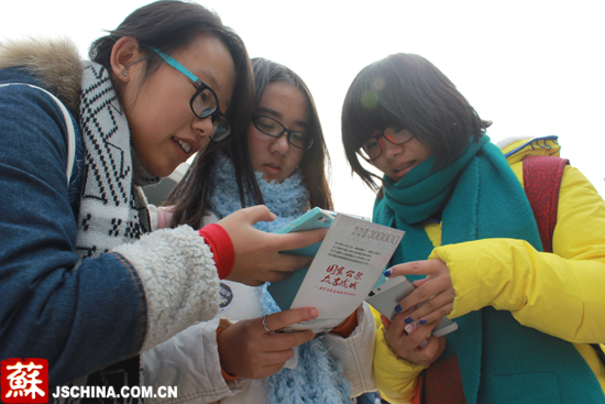 南郵的學(xué)子們拿著宣傳冊(cè)“加磚”。