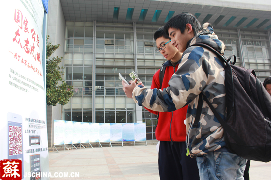 今天,新華報(bào)業(yè)傳媒集團(tuán)“國(guó)家公祭新聞行動(dòng)進(jìn)校園”第九站走進(jìn)南京郵電大學(xué),向師生推廣宣傳《國(guó)家公祭眾志成城——為了永不忘卻的國(guó)家記憶》全媒體互動(dòng)“加磚”活動(dòng)。南郵的同學(xué)們聽完本網(wǎng)記者的介紹后,紛紛拿出手機(jī)現(xiàn)場(chǎng)“加磚”。雖然是中午飯點(diǎn),展板后就是學(xué)校食堂,但很多同學(xué)顧不上吃飯,拿著傳單向周圍的同學(xué)們發(fā)放,而拿到單子的學(xué)生看過后也紛紛用手機(jī)掃描二維碼“加轉(zhuǎn)”。
