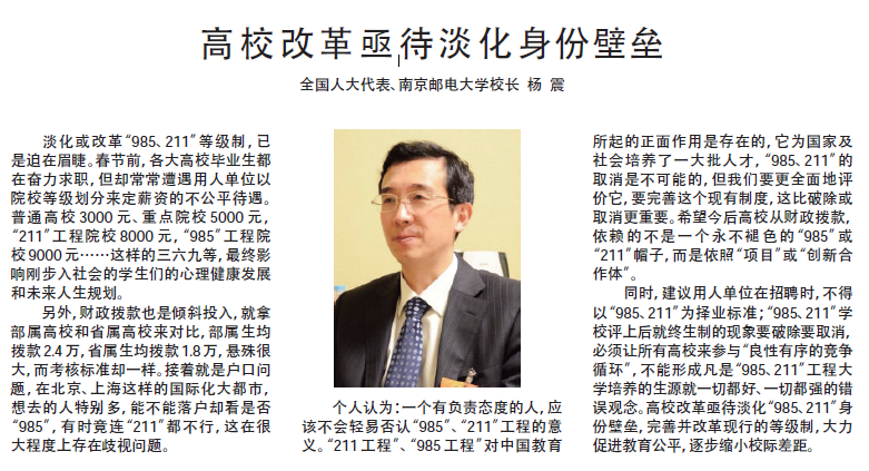 【新華日報(bào)】高校改革亟待淡化身份壁壘