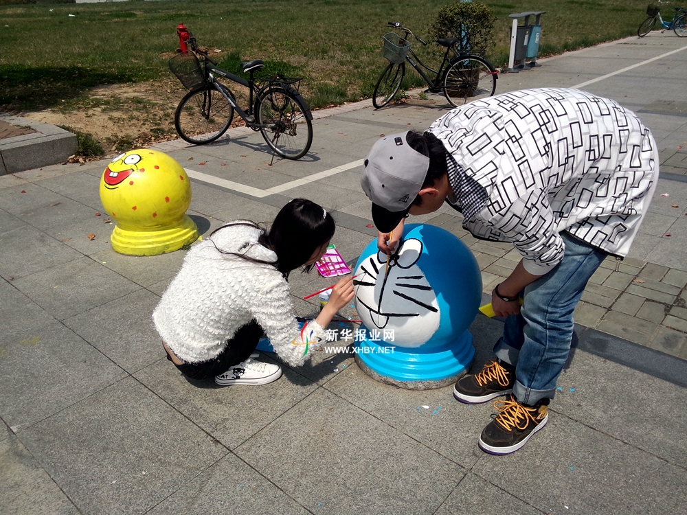 大白、機(jī)器貓、皮卡丘、龍貓……,這些可愛的卡通形象出現(xiàn)在了南京郵電大學(xué)的校園內(nèi)。4月11日中午開始,南郵傳媒與藝術(shù)學(xué)院的二十多位同學(xué)手持畫筆,把校園里的路障球裝扮得“萌萌噠”!據(jù)該院學(xué)生會(huì)主席朱林同學(xué)介紹說:“一個(gè)路障球需要花上4個(gè)小時(shí)才能裝扮好。同學(xué)們積極性很高,從上午九點(diǎn)就開始畫了。”