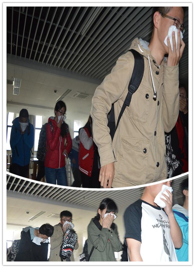 4月15日南京郵電大學(xué)圖書(shū)館消防演練活動(dòng)正式拉開(kāi)帷幕,學(xué)生走到圖書(shū)館前,發(fā)現(xiàn)門(mén)口的“大白”過(guò)來(lái)引導(dǎo)大家進(jìn)入報(bào)告廳,聽(tīng)仙林消防中隊(duì)呂指導(dǎo)員作消防疏散安全講座。正當(dāng)同學(xué)們以為常規(guī)講座結(jié)束準(zhǔn)備離場(chǎng)的時(shí)候,“大白”又一次冒出來(lái)了,現(xiàn)場(chǎng)“哇塞”的聲音此起彼伏。“大白”和現(xiàn)場(chǎng)同學(xué)互動(dòng)提問(wèn),同學(xué)們的答題熱情不斷高漲。消防疏散注意事項(xiàng)后,現(xiàn)場(chǎng)同學(xué)隨大白到三樓自然閱覽室,工作人員按照預(yù)案點(diǎn)燃煙餅,火警隨即響起,500多人捂著白毛巾有條不紊的疏散至圖書(shū)館一樓西側(cè)廣場(chǎng)。