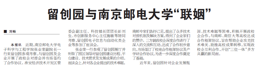 【淮安日報】留創園與南京郵電大學“聯姻”