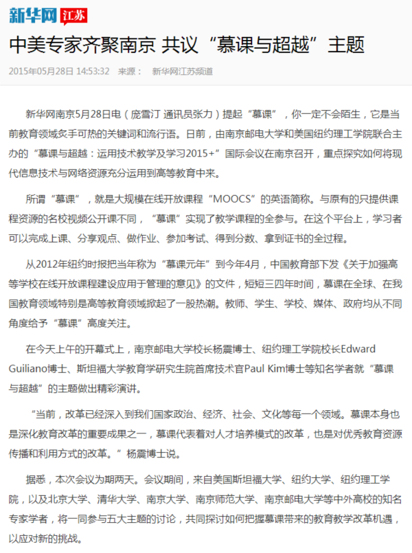 【新華網江蘇頻道】中美專家齊聚南京 共議“慕課與超越”主題