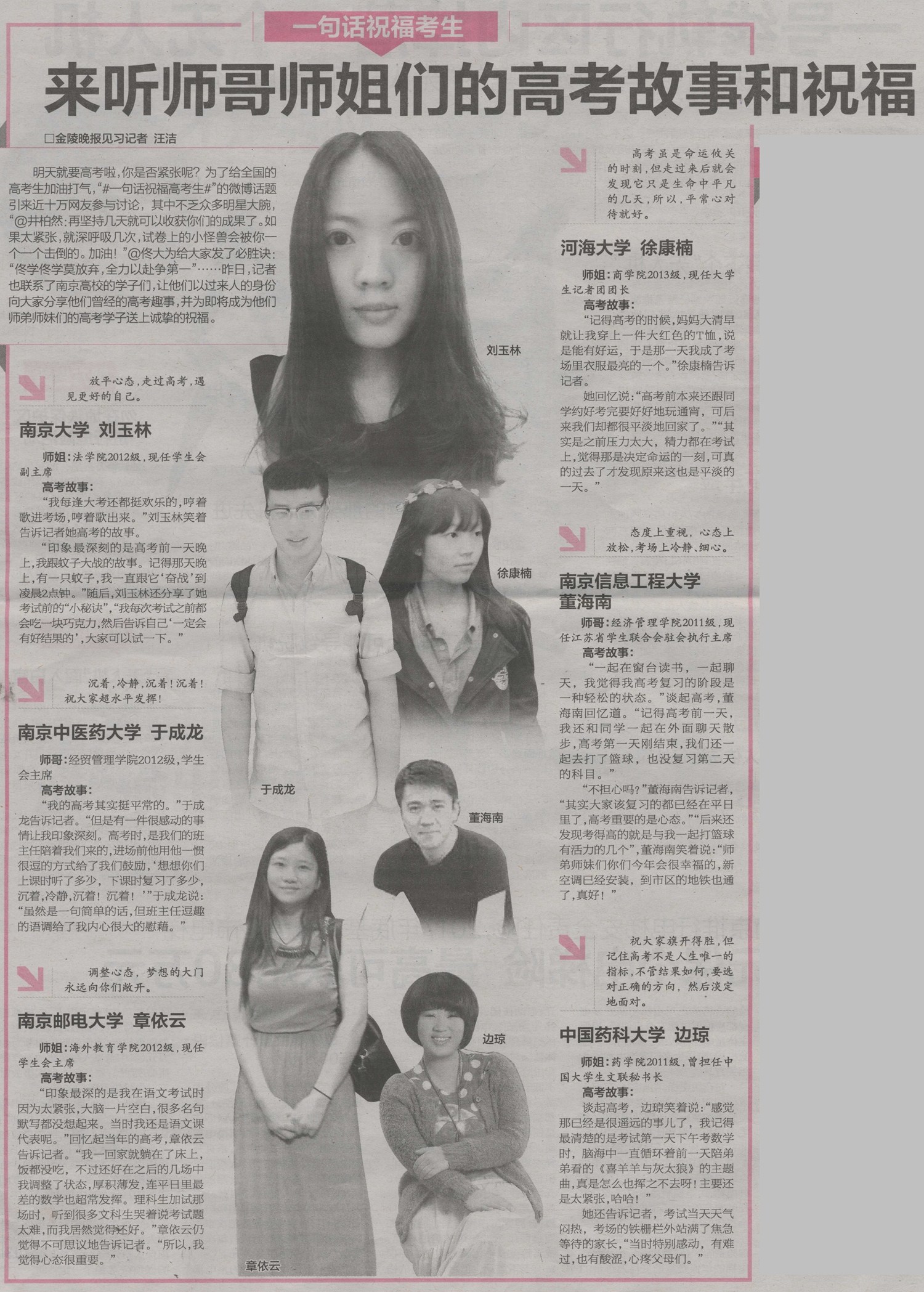 【金陵晚報】來聽師哥師姐們的高考故事和祝福