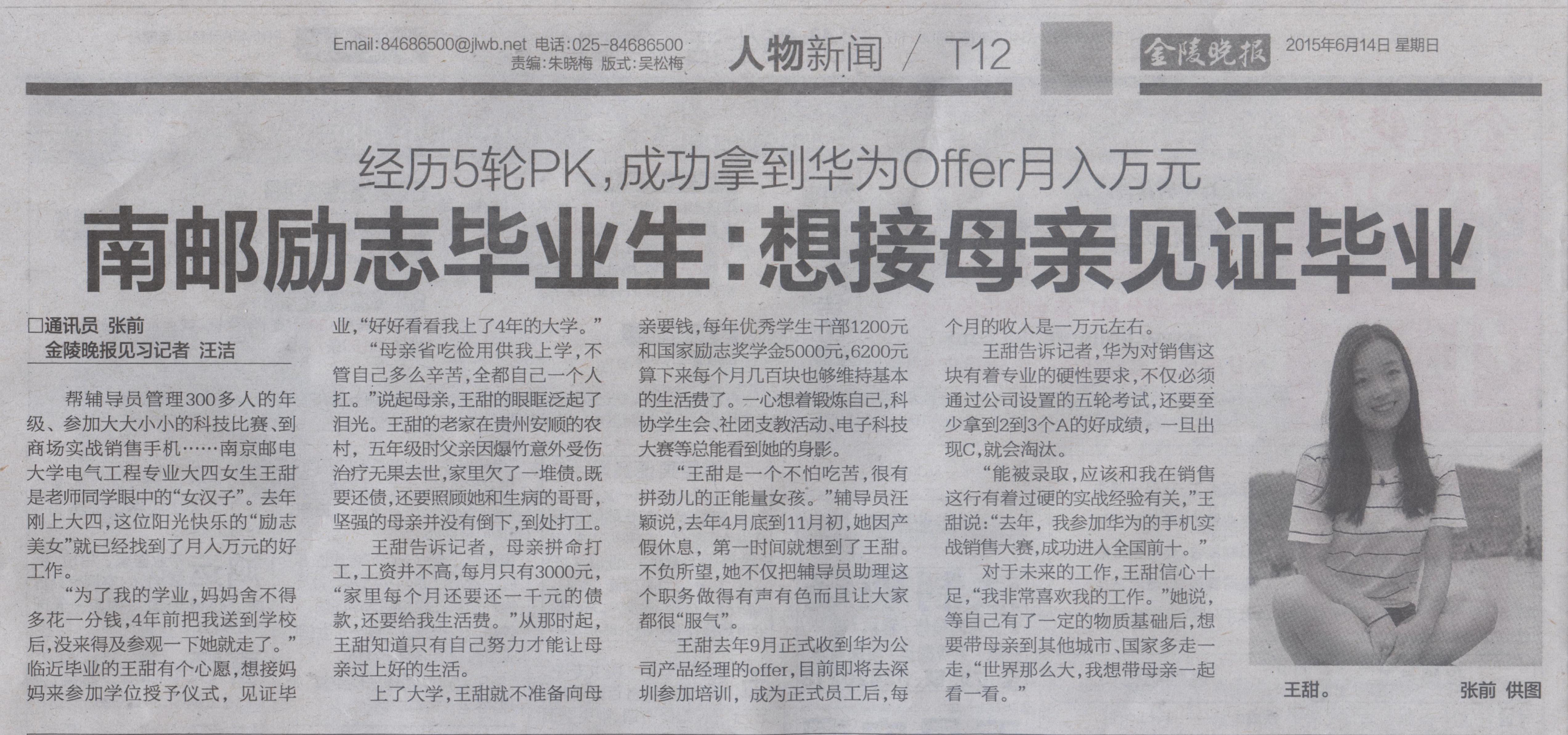 【金陵晚報】南郵勵志畢業生:想接母親見證畢業