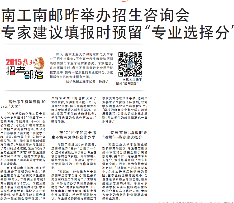 【揚子晚報】南工南郵昨舉辦招生咨詢會