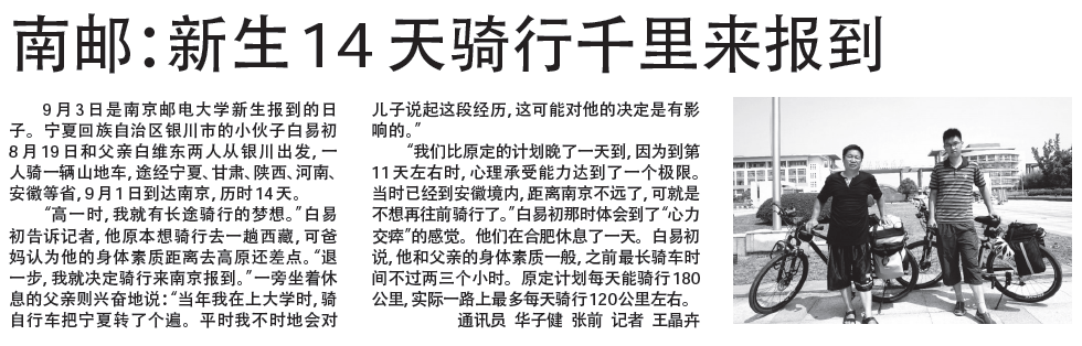 【南京晨報】南郵:新生14天騎行千里來報到