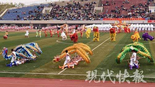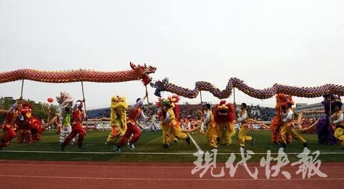 平盤(pán)波浪、孔雀開(kāi)屏、飛龍?jiān)谔?hellip;…10月30日上午,南京郵電大學(xué)在仙林校區(qū)體育場(chǎng)舉辦第46屆運(yùn)動(dòng)會(huì)。一支由140人組成的龍獅隊(duì)真神氣,在他們精彩的表演中拉開(kāi)了開(kāi)幕式的序幕。他們個(gè)個(gè)精神抖擻,能擺出很多高難度動(dòng)作。現(xiàn)代快報(bào)記者 俞月花/文 徐洋/攝