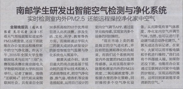 【金陵晚報(bào)】南郵學(xué)生研發(fā)出智能空氣檢測(cè)與凈化系統(tǒng)