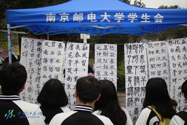南郵學(xué)子閱讀“墨哀”書法作品。
