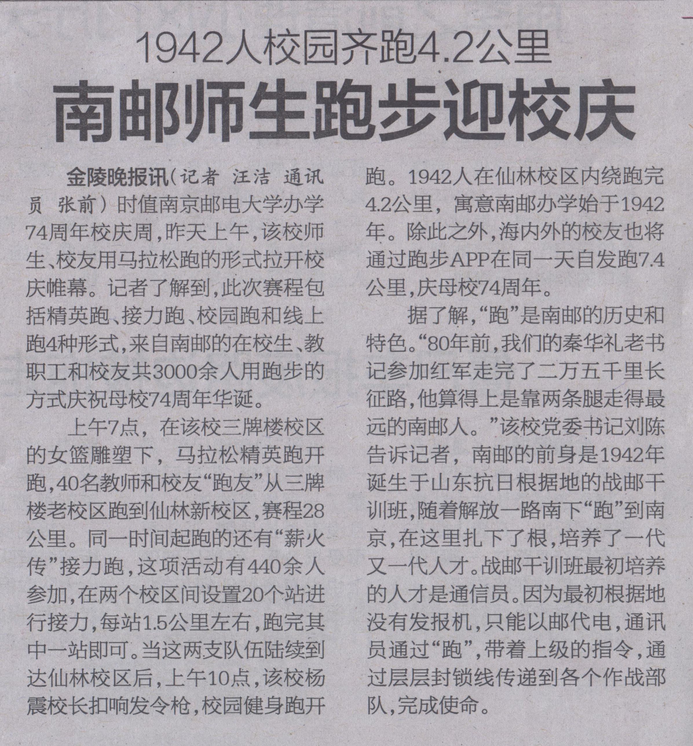 【金陵晚報】南郵師生跑步迎校慶