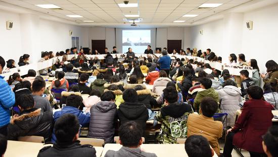 速泰熙先生還詳細(xì)介紹了他設(shè)計(jì)的南京地鐵《彩燈秦淮》《愛墻》等壁畫的創(chuàng)意,從南京地鐵文化的共識(shí)中,再?gòu)臅O(shè)計(jì)《雕魂鑒史》《吳為山雕塑繪畫》《吳為山寫意雕塑》《雕塑的詩性》等作品中去感受設(shè)計(jì)文化的塑造,對(duì)應(yīng)了“有根的現(xiàn)代”文化的內(nèi)涵。速泰熙先生與在場(chǎng)師生進(jìn)行互動(dòng)交流,使大家受益匪淺。