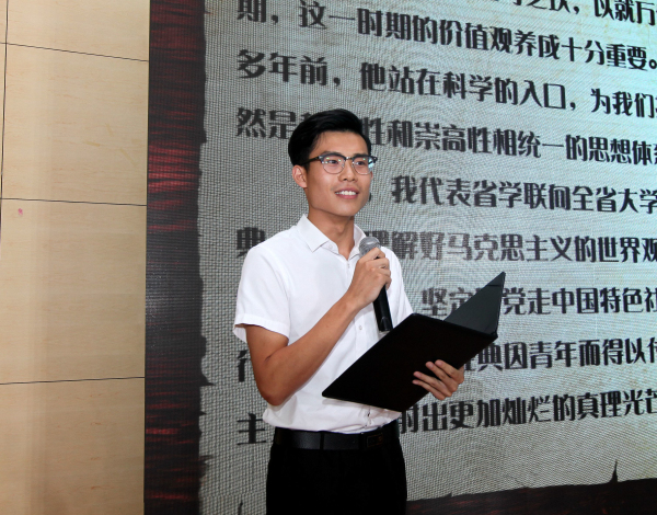 江蘇省學(xué)聯(lián)主席魏昌碩同學(xué)宣讀倡議書《青年,一起來讀馬列主義經(jīng)典》,向全省青年學(xué)生發(fā)出倡議,邀請大家一起研讀馬列經(jīng)典,一起學(xué)習(xí)馬克思主義。