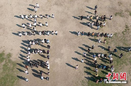 師生們拼成“青春”字樣。 泱波 攝