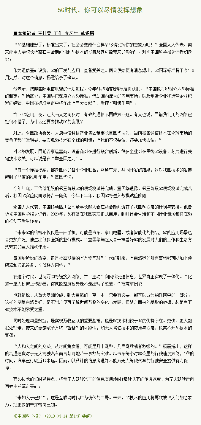 【中國科學報】5G時代,你可以盡情發揮想象
