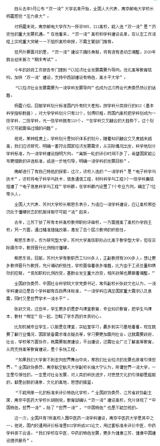 【中國青年報】“一流學科”應滿足國家重大需求