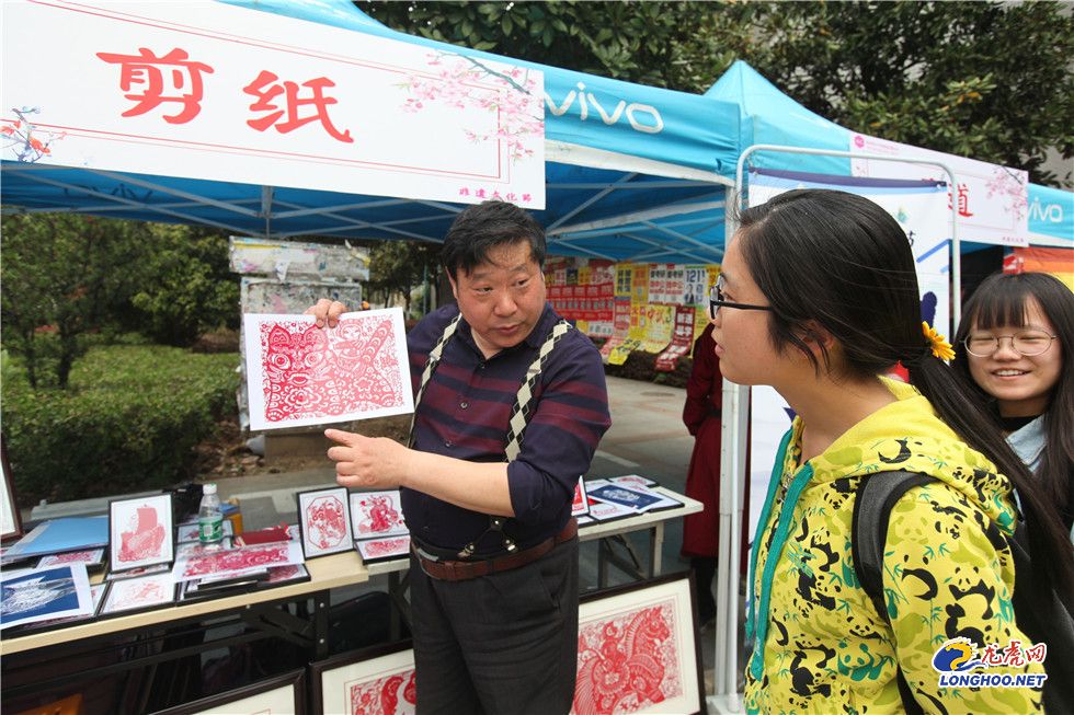 龍虎網(wǎng)訊(通訊員 李心電 記者 張璐)4月11日,南京郵電大學舉辦非遺文化節(jié)。中國民間剪紙藝術家陳耀、秦淮彩燈、風箏代表性傳承人曹紅、布藝傳承人高勇、抖空竹傳承人孫光輝、植物染色手工藝術王建超等非遺大師帶來了精美的非遺作品,并現(xiàn)場展示了各自精妙絕活。