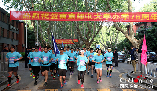 “薪火傳?踏歌行”南京郵電大學76周年校慶健身跑活動從三牌樓校區出發 尤萱 攝