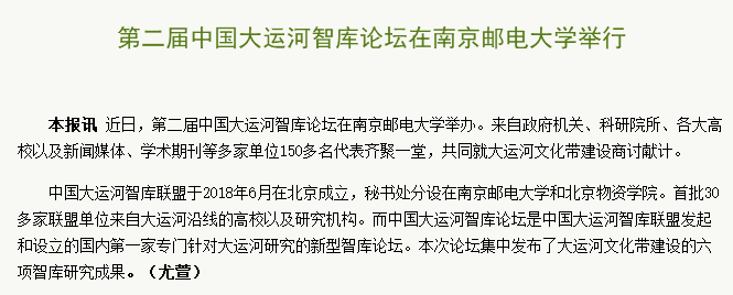【中國科學報】第二屆中國大運河智庫論壇在南京郵電大學舉行