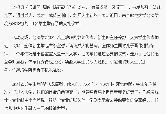 【南京日報】南郵舉辦尊師祭孔成人禮活動
