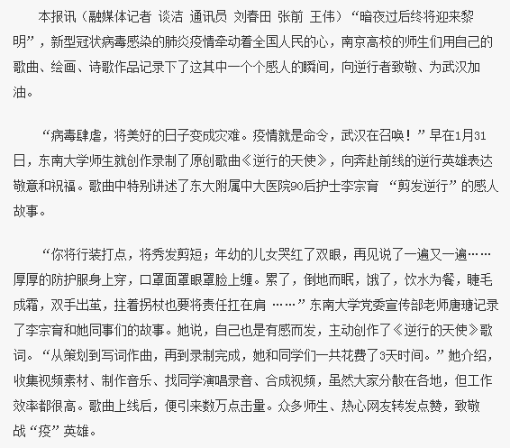 【南京日報】高校文藝作品記錄感人瞬間