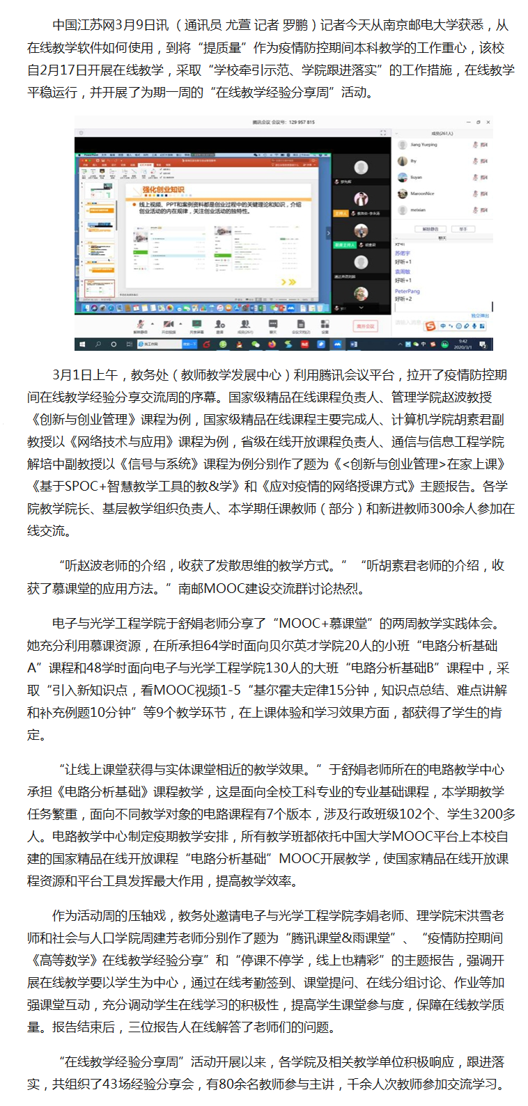 【中國(guó)江蘇網(wǎng)】南郵開展在線教學(xué)“提質(zhì)”經(jīng)驗(yàn)分享活動(dòng)
