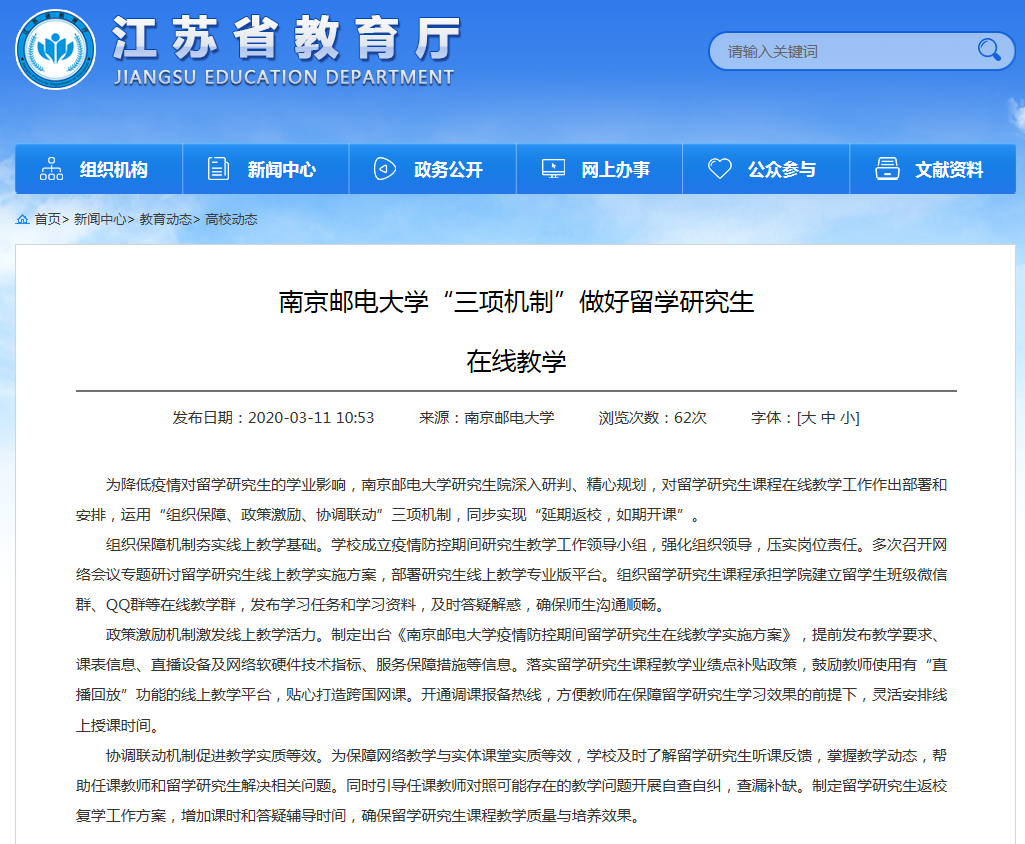 【江蘇教育】南京郵電大學“三項機制”做好留學研究生在線教學