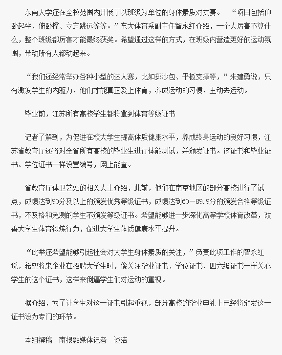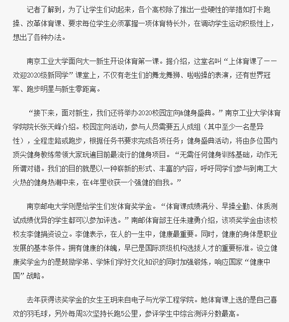 【南京日報】南京高校煞費苦心,體育也開新生第一課