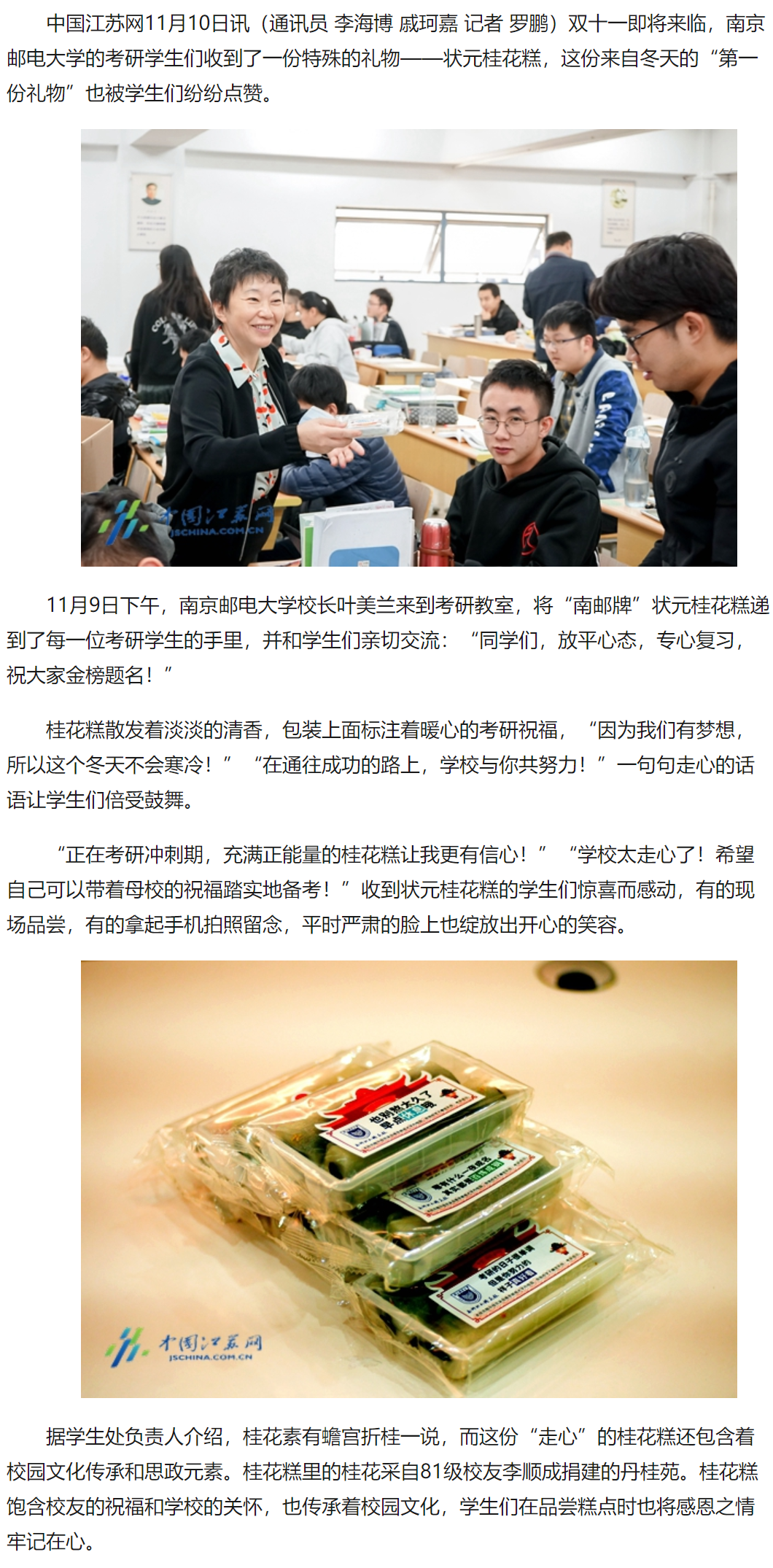 【中國江蘇網】雙十一將至 南郵考研學子收到了冬天的“第一份禮物”
