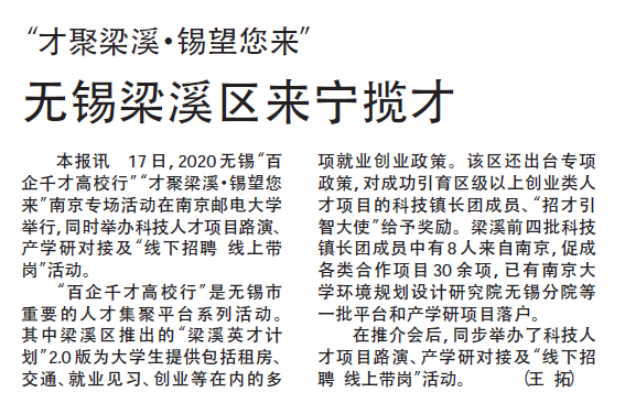 【新華日報】無錫梁溪區來寧攬才