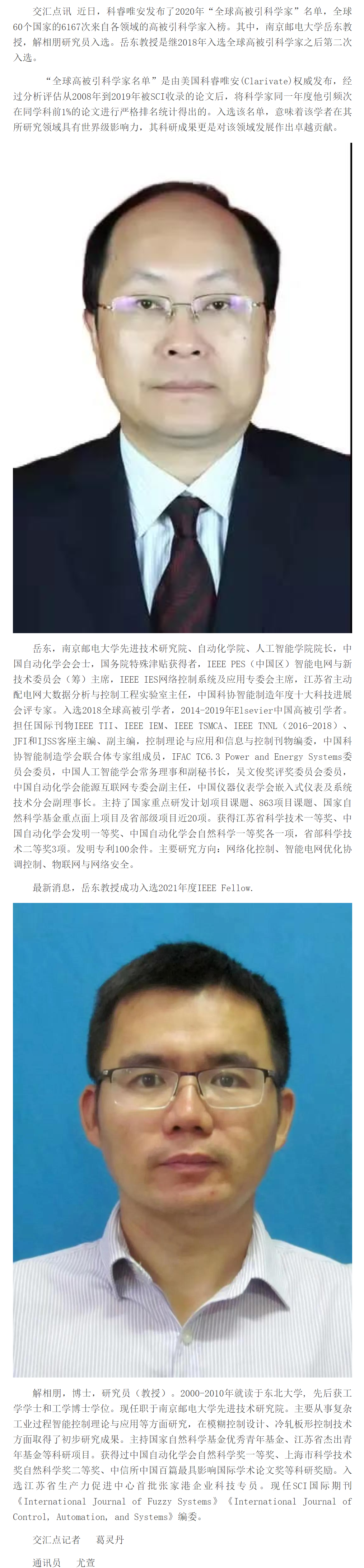 【新華日報客戶端】“全球高被引科學家”!南京這所高校入選倆!