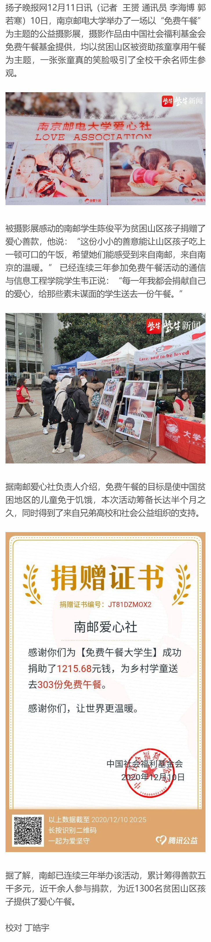 【揚子晚報客戶端】小“膳”大愛,南郵舉辦慈善攝影展為山區兒童提供免費午餐