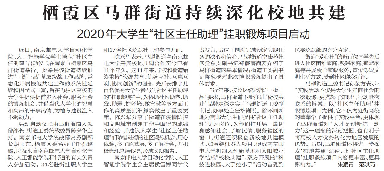 【新華日報】棲霞區馬群街道持續深化校地共建