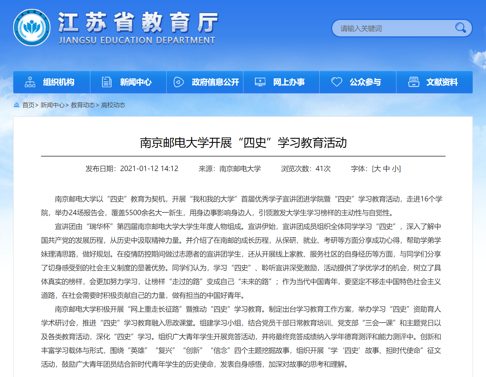 【省教育廳官網】南京郵電大學開展“四史”學習教育活動