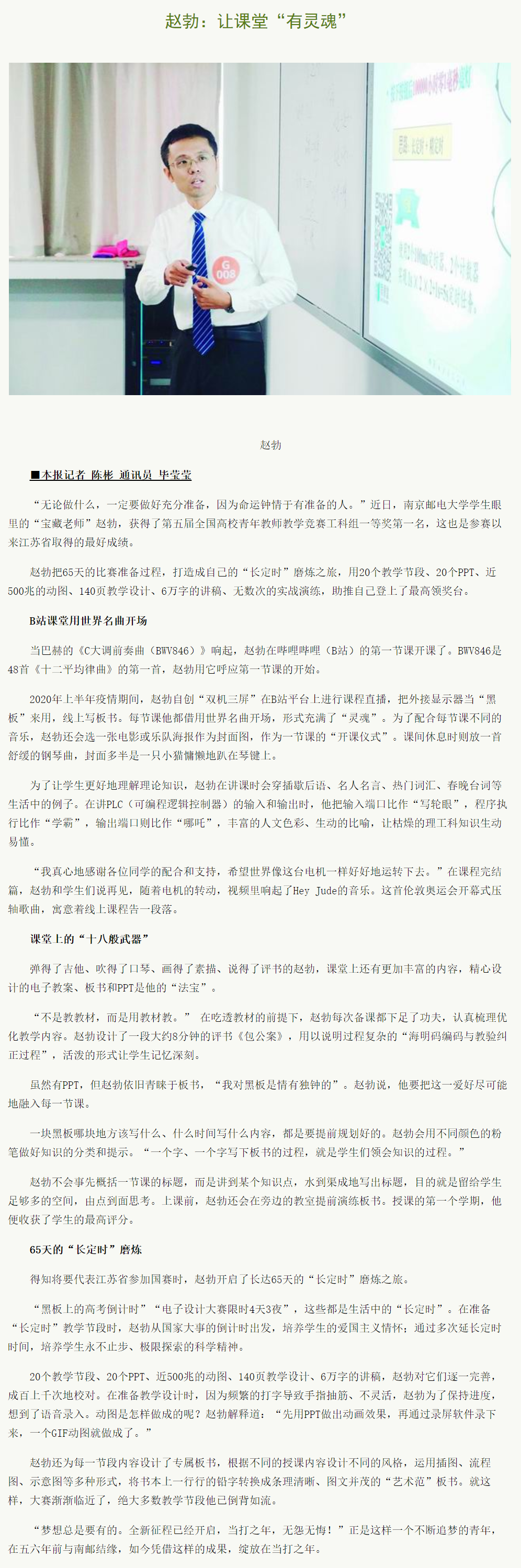 【中國科學報】趙勃:讓課堂“有靈魂”