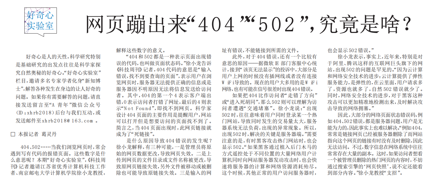 【新華日報】網頁蹦出來“404”“502”,究竟是啥?
